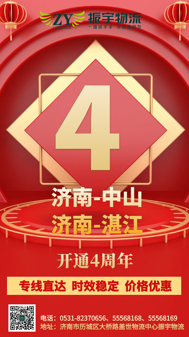 振宇物流集團丨濟南-中山、湛江直達(dá)專線開通四周年,線路發(fā)貨優(yōu)惠中……