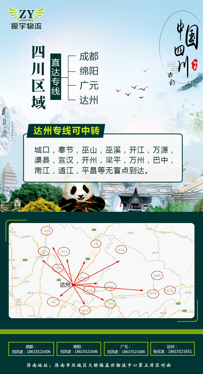 濟(jì)南直發(fā)成都、綿陽、達(dá)州、廣元