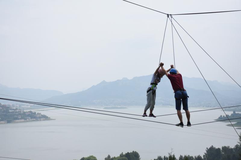 2人相依為命高空踩鋼絲